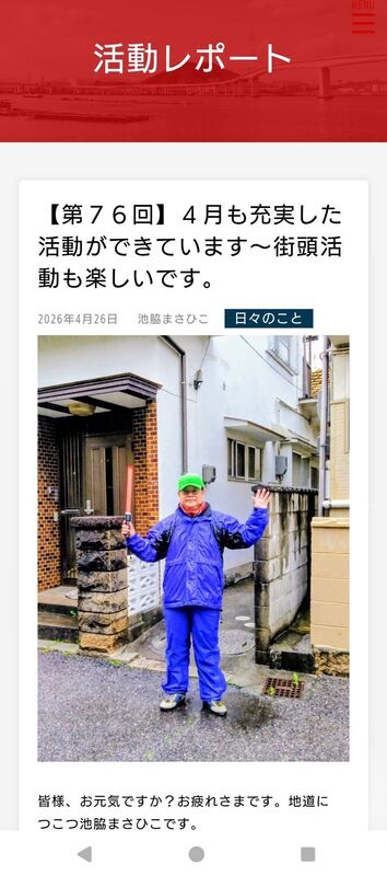 #池脇まさひこ ホームページの活動レポート「【第76回】4月も充実した活動ができています〜街頭活動も楽しいです。」を更新しました。お読みいただければ幸いです。ikewaki-masahiko.com