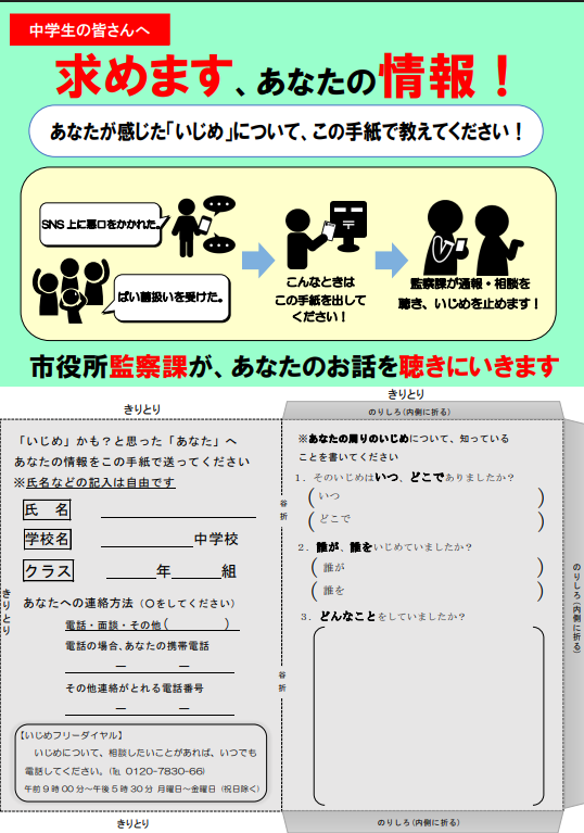 (2)毎月学校で配布する、いじめ防止ビラで抑止力を高める
