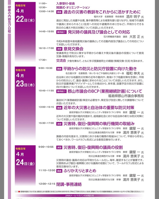 市町村議会議員研修『防災と議員の役割』研修に3日間参加させていただきました!