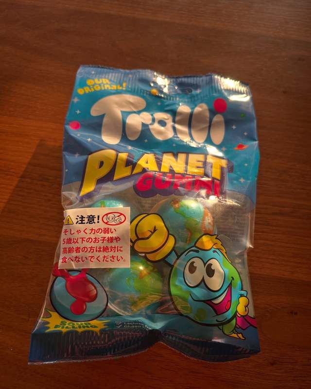 皆さん、「地球グミ」って知ってますか??娘が言い出したので、調べてみたら、二、三年前にYoutubeをキッカケに大流行り、普通の店ではあまり売っておらずドンキやロフトで目撃情報あり。類似品も沢山でているが、Trolli社のPLANET GUMMIが正規品とのこと。