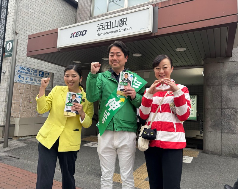 今朝は浜田山駅で大和田区議、小宮前都議と街頭活動でした😊早速、ママさん達から激励🙇♀️