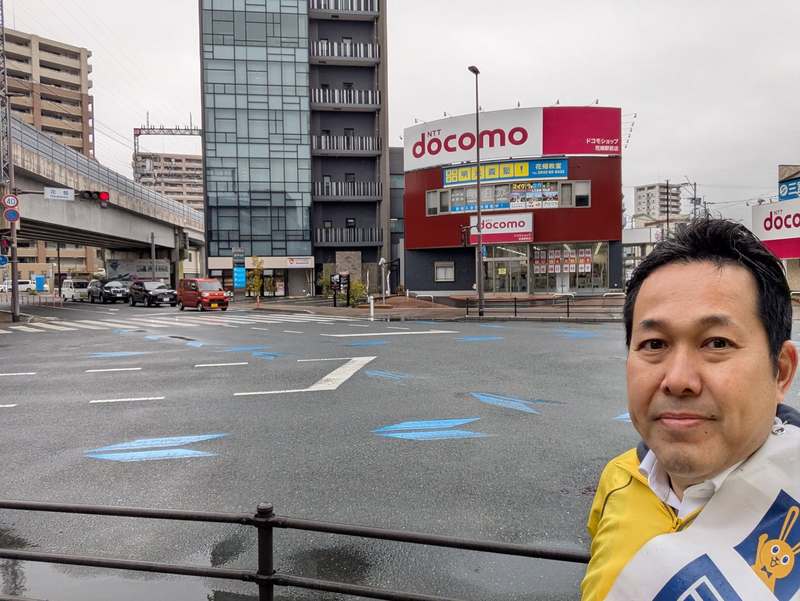 ホーム>政党・政治家>近藤 まさひこ (コンドウ マサヒコ)>【久留米市】雨の花畑交差点📍もうコートは要らない暖かさですが、未明は雷もあり、春の嵐でした。