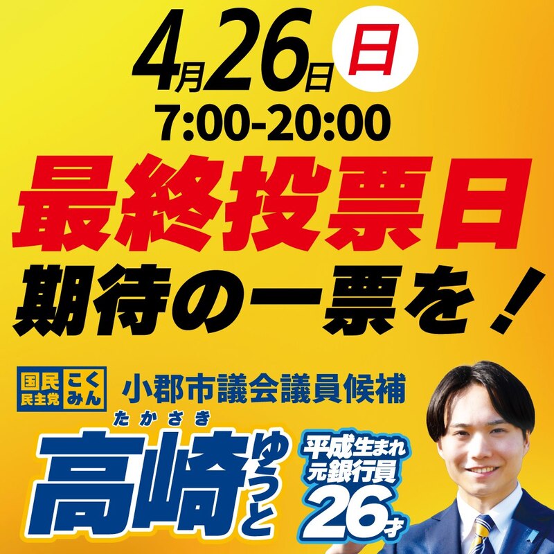 小郡の未来を #高崎ゆうと に託してください! よろしくお願いします。 #小郡市議選2026