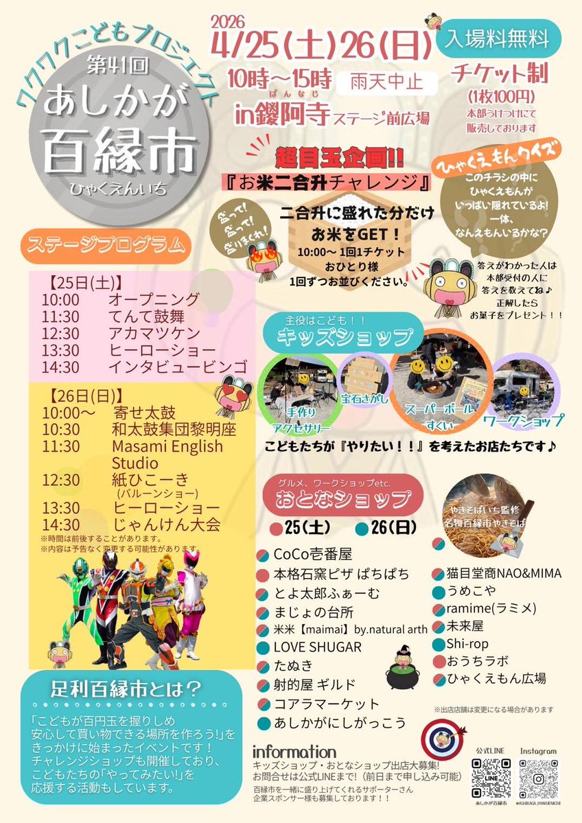 2026年4月25日(土)・26日(日)に、鑁阿寺で行われる「第41回 あしかが百縁市」です。