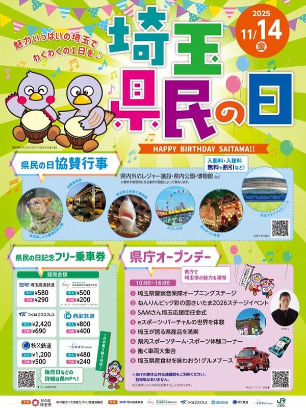 【今日】まだ間に合う埼玉県民の日!午後はお得に過ごせます。
