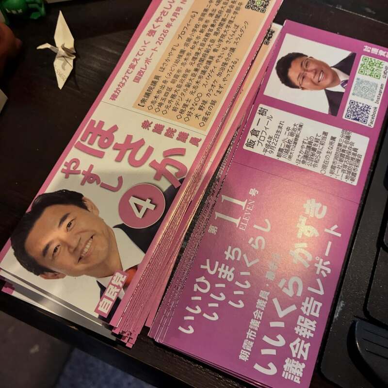 ホーム>政党・政治家>いいくら 一樹 (イイクラ カズキ)>いずれ菖蒲か杜若朝霞市議会議会報告11号レポート3月議会の内容をまとめた新しいレポートができました。