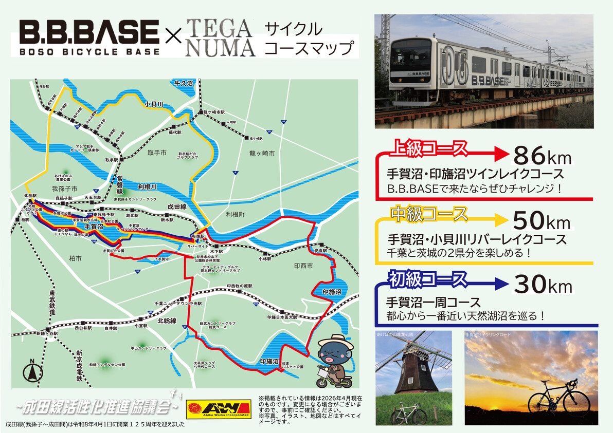 「B.B.BASE手賀沼」が今年も我孫子市の布佐駅に到着することを、大変嬉しく思います。自転車をそのまま電車に持ち込めるこの列車は、都内から手軽に手賀沼へアクセスできる絶好の手段です。手賀沼周辺は、サイクリングコースとして豊かな水辺と緑の景観を楽しめる場所で、あびこ農産物直売所あびこん・水の館・鳥の博物館・白樺文学館・杉村楚人冠記念館など、文化・自然・食の拠点が集まっています。B.B.BASEを活用して手賀沼エリア全体を回遊してもらうことは、我孫子の魅力を市内外に広く伝える大切な機会です。