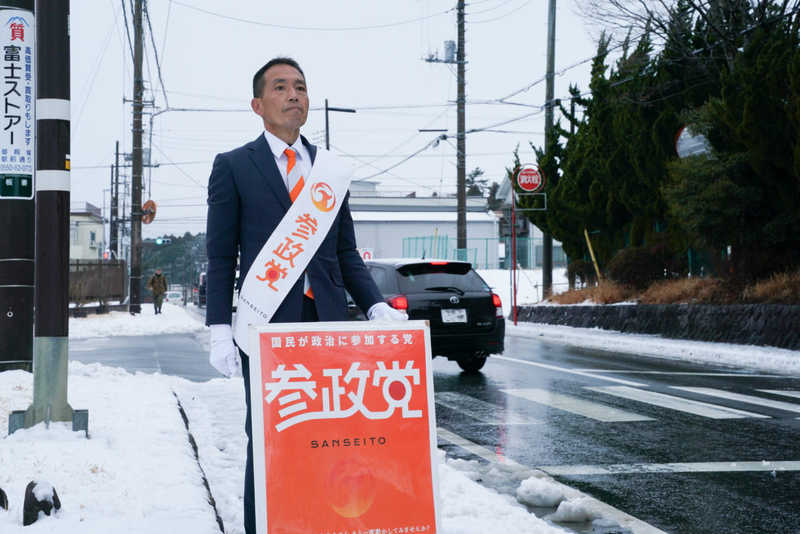 【積雪辻立ち】 御殿場は標高差があるので、ある線を境に積雪となりました❄ 歩道等も滑りやすくなっております。外出される方はどうかご注意下さい✨ #参政党 #参政党静岡 #参政党静岡第5支部 #御殿場 #積雪