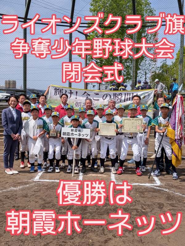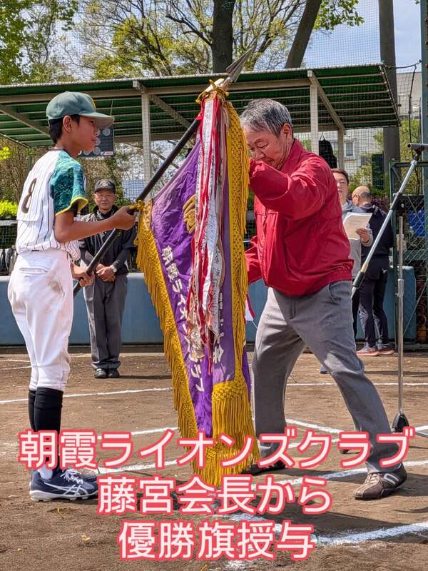 朝霞ライオンズクラブ活動にて、ライオンズ旗争奪少年野球大会閉会式に参列、優勝は「朝霞ホーネッツ...