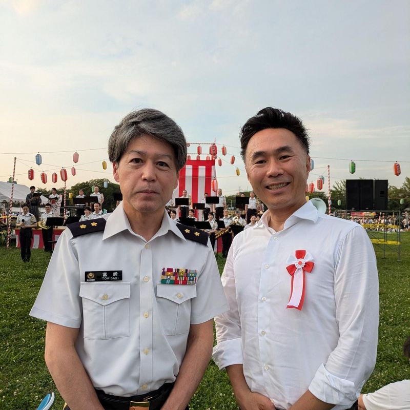 朝霞駐屯地納涼大会、順延なるも大盛況❗子供達が多かったのが印象的。pic2より、東部方面総監 陸将 冨樫勇一様、陸上総隊 運用部長 陸将補 梨木信吾くん(同期/同部屋/同専攻)、東部方面システム通信群 群長 1等陸佐 鈴木諭司くん(2期下の対番)、元朝霞駐屯地司令 小早川達彦様、隊友会 小林博史様、朝霞市危機管理監 千葉徹様。途中、専属カメラマンの妻が所用で離脱でツーショット写真はこれで終わりですが多くの方とお話できました。以降は日が暮れる状況をご堪能ください。日が暮れるごとに人が増え、最盛期は一瞬身動きが取りにくい状況になるほどの盛況ぶりでした。