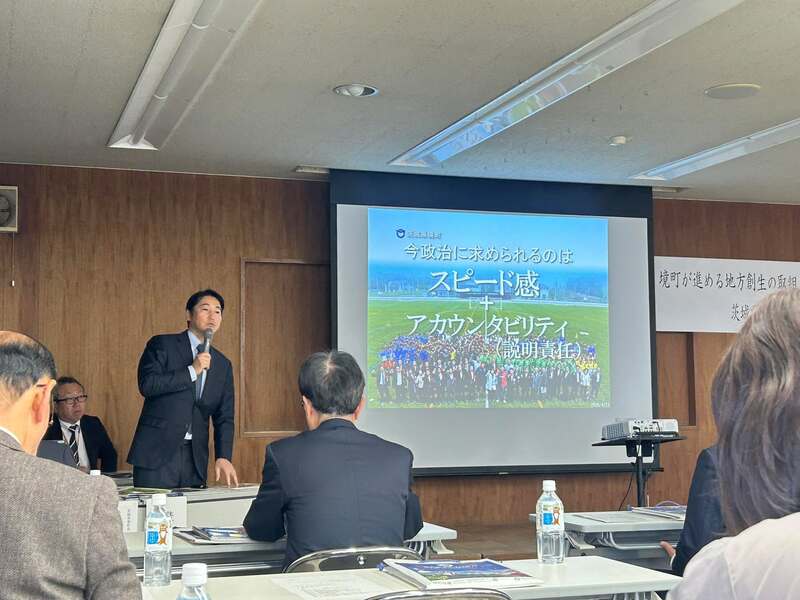 茨城県の境町から橋本町長がお越しくださり、名取市職員や議員に向けて、ふるさと納税や交付金を有効に活用した町政運営について講演をいただきました。