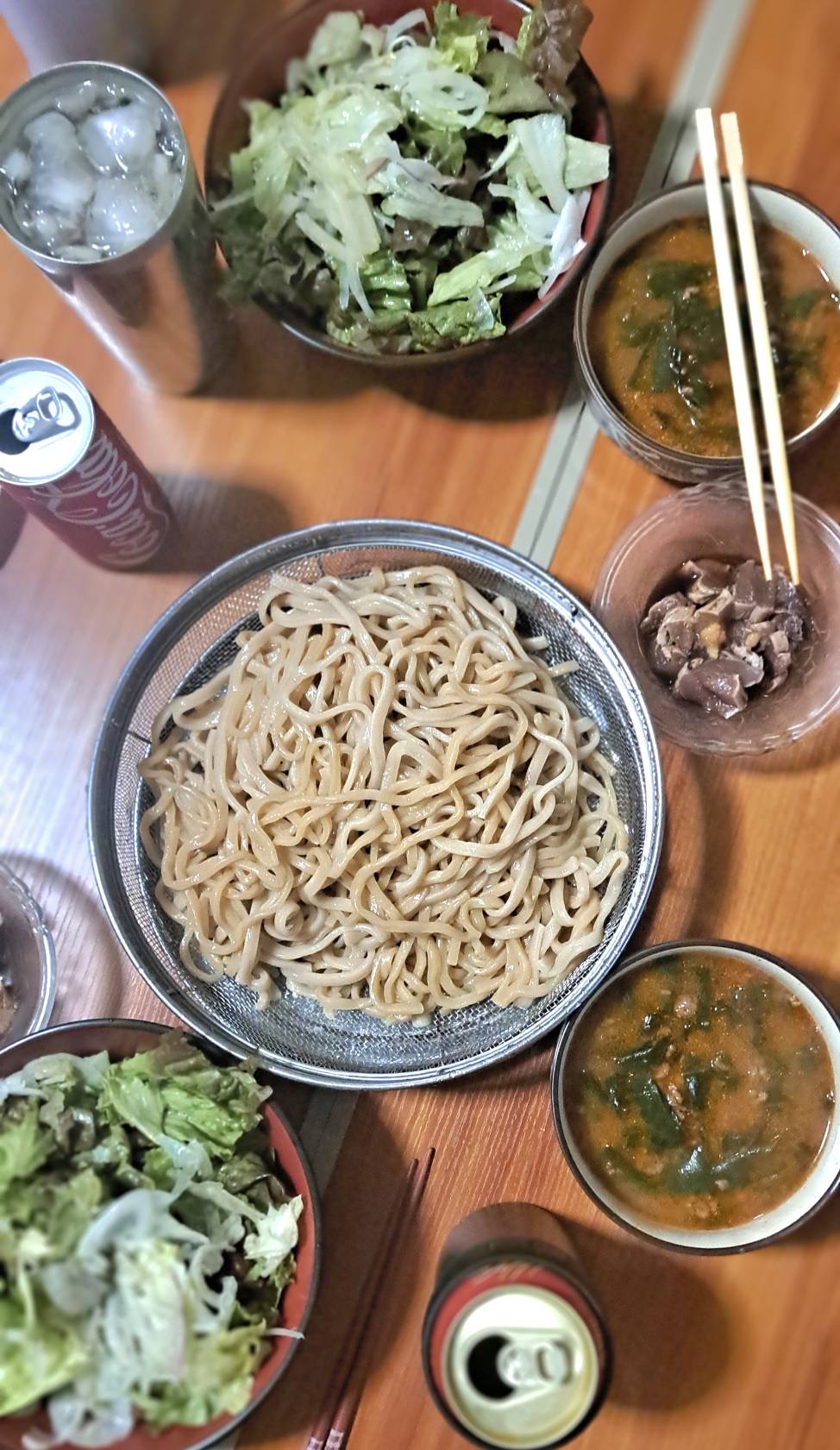 先日頂いた長ネギの🟩の部分はつけ麺のつけ汁に、サニーレタスは🥗へと変貌しました!