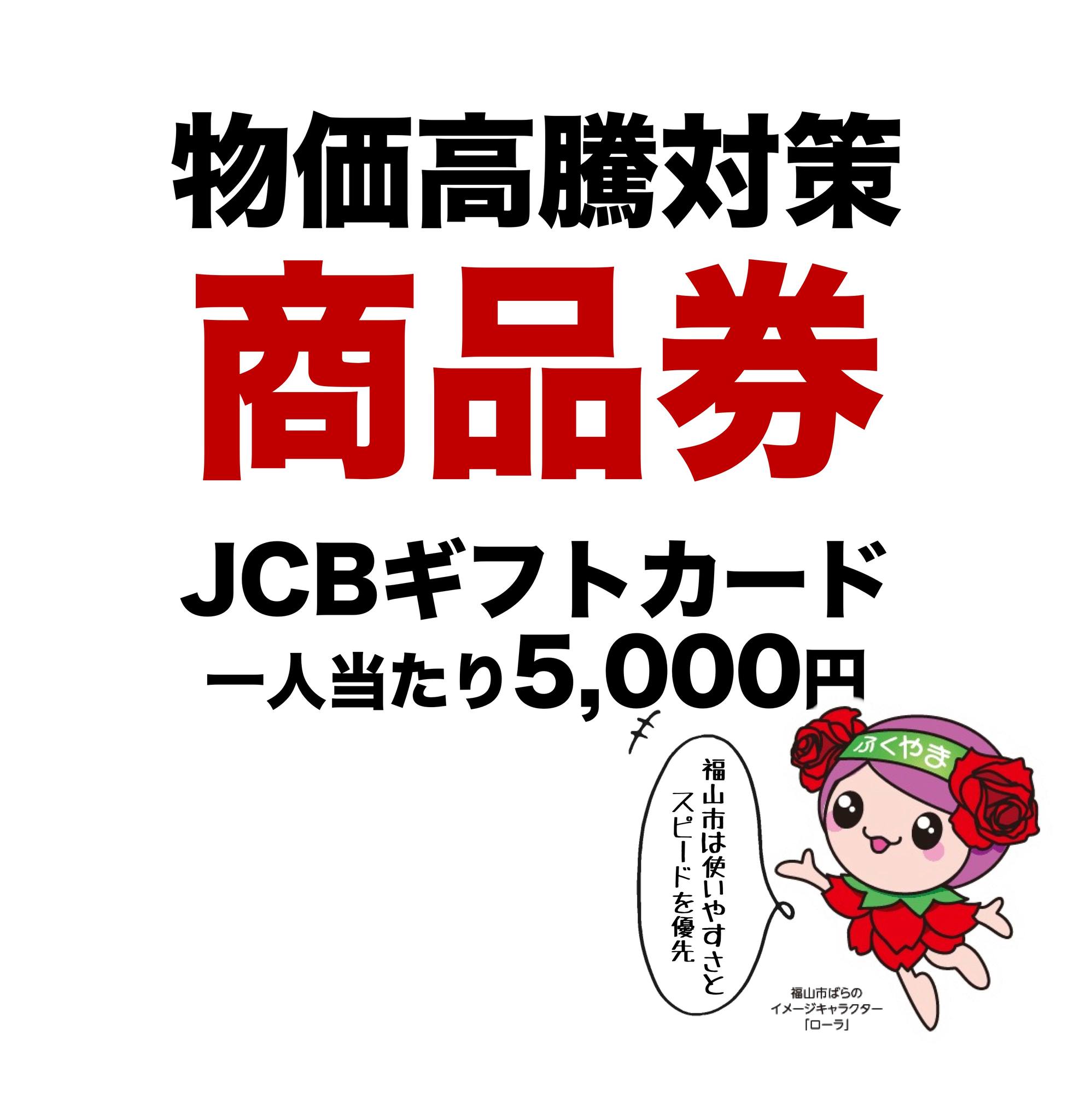 ・市民全員に1人あたり5,000円分の商品券(JCBギフトカード)を配布させていただきます。