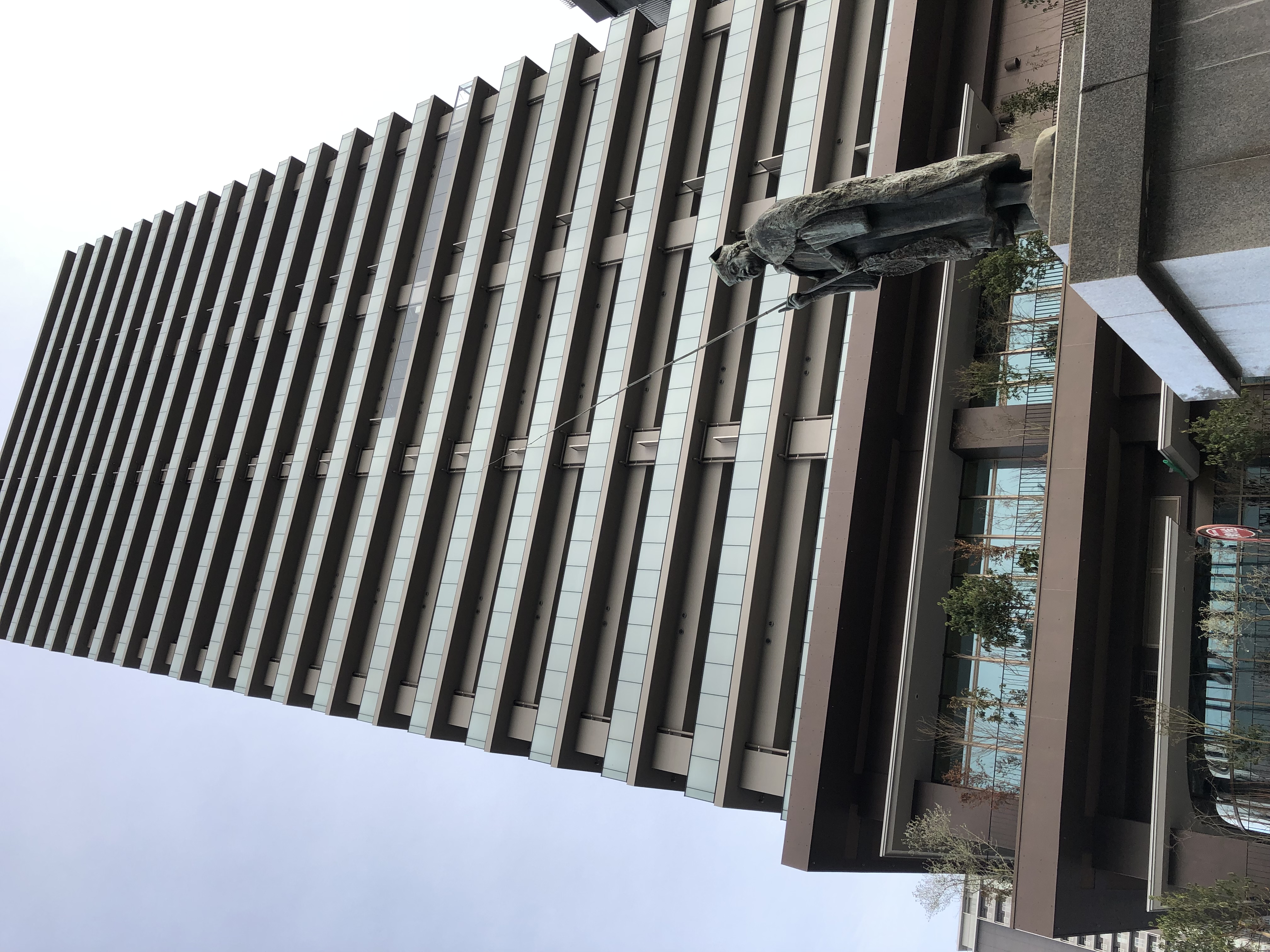福山駅前のキャスパビルやと~ぶホテルの跡地に建設中のビルの囲いが取れ、全貌が見えてきました。