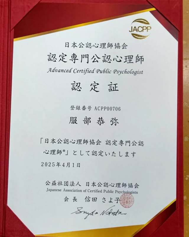 ホーム>政党・政治家>服部 たかひろ (ハットリ タカヒロ)>認定専門公認心理師になりました!✨