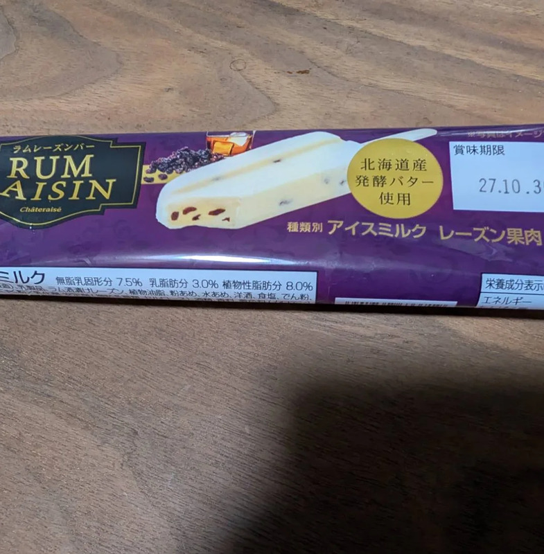 今は帰宅して、最近ハマっているシャトレーゼのラムレーズンバーで一息。冷たい甘さが、疲れた体に染み渡ります……。