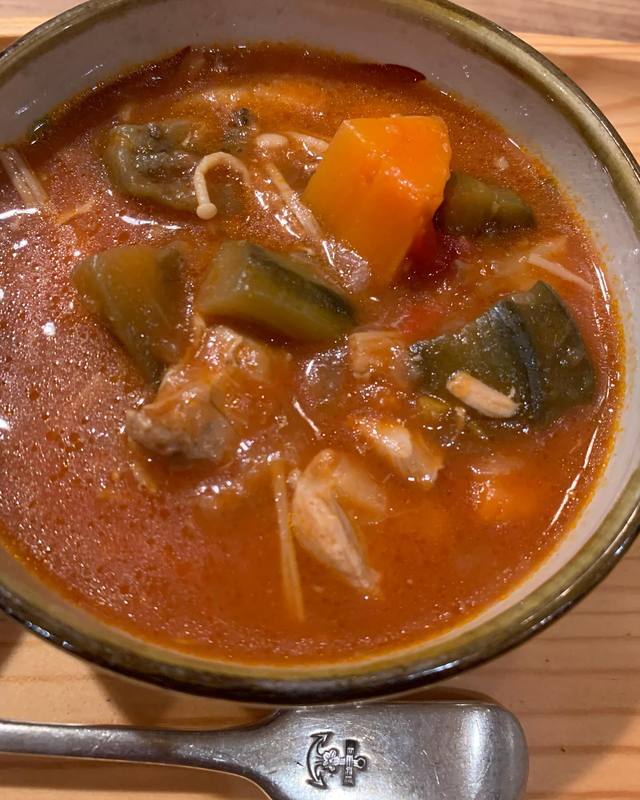 11/10松元マルシェ③ マルシェの目玉は鹿児島の食材を使った上柿元シェフのスープ🍲とっても美味しかった😋家に帰ったら大原耕一郎シェフのスープ🍲これまた美味しかった😋 #松元マルシェ #上柿元勝シェフ