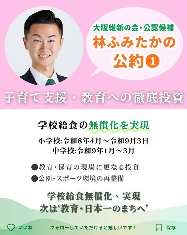 大阪維新の会公認 河内長野市議会議員候補 「林ふみたか」よろしくお願いいたします!