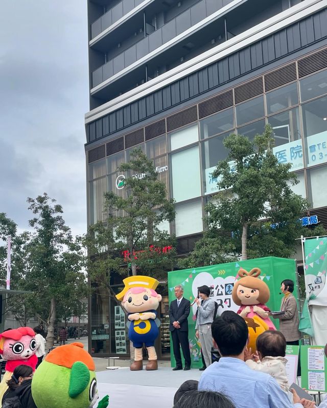 戸越公園駅周辺まちづくり協議会のセレモニーでは、可愛いキャラクターたちと共に森澤区長がご登壇✨