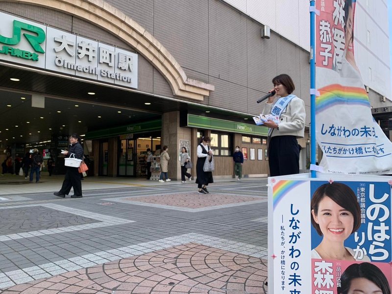 ホーム>政党・政治家>しのはら りか (シノハラ リカ)>今週頭は寒暖の差にやられ体調を崩しており、久しぶりに街頭に立てました!午前も午後も大井町駅にて。