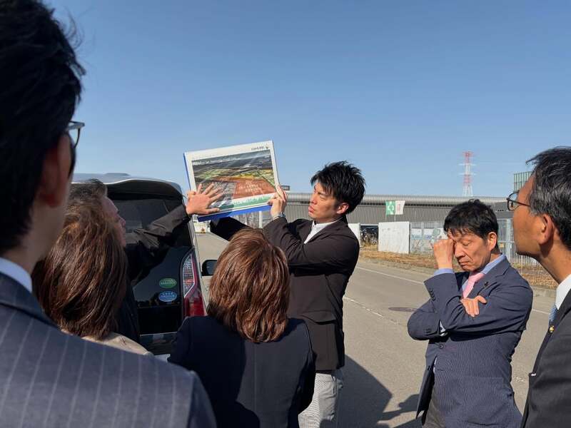 石狩市では、石狩湾新港地域のREゾーンを中心に、再エネとデータセンターを組み合わせたまちづくりを見学。