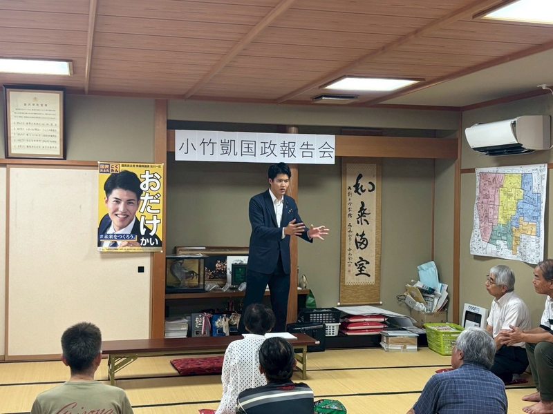 今日の夕方にお集まりいただき、国政の様々なことについて話しました。 石川県内で今も大雨の被害が出ている地域もありますし、全国的にも自然災害が頻発しています。災害に強い国づくりを石川県が先頭になって進めていきたいという思いがあります。
