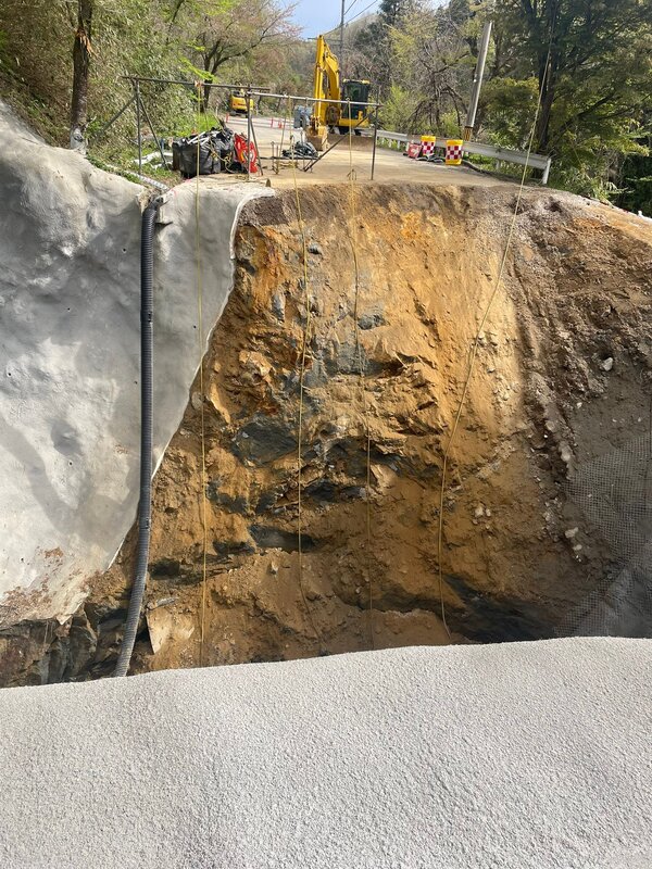 今年1月の路肩決壊時以降、モルタル吹付を行い、片側交互で通行可能となっておりました。