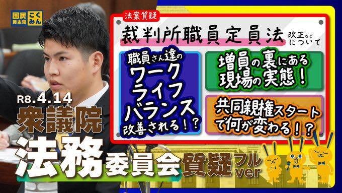 4月14日法務委員会の質疑全編です・裁判所の増員・共同親権の課題について質疑しています#国民民...