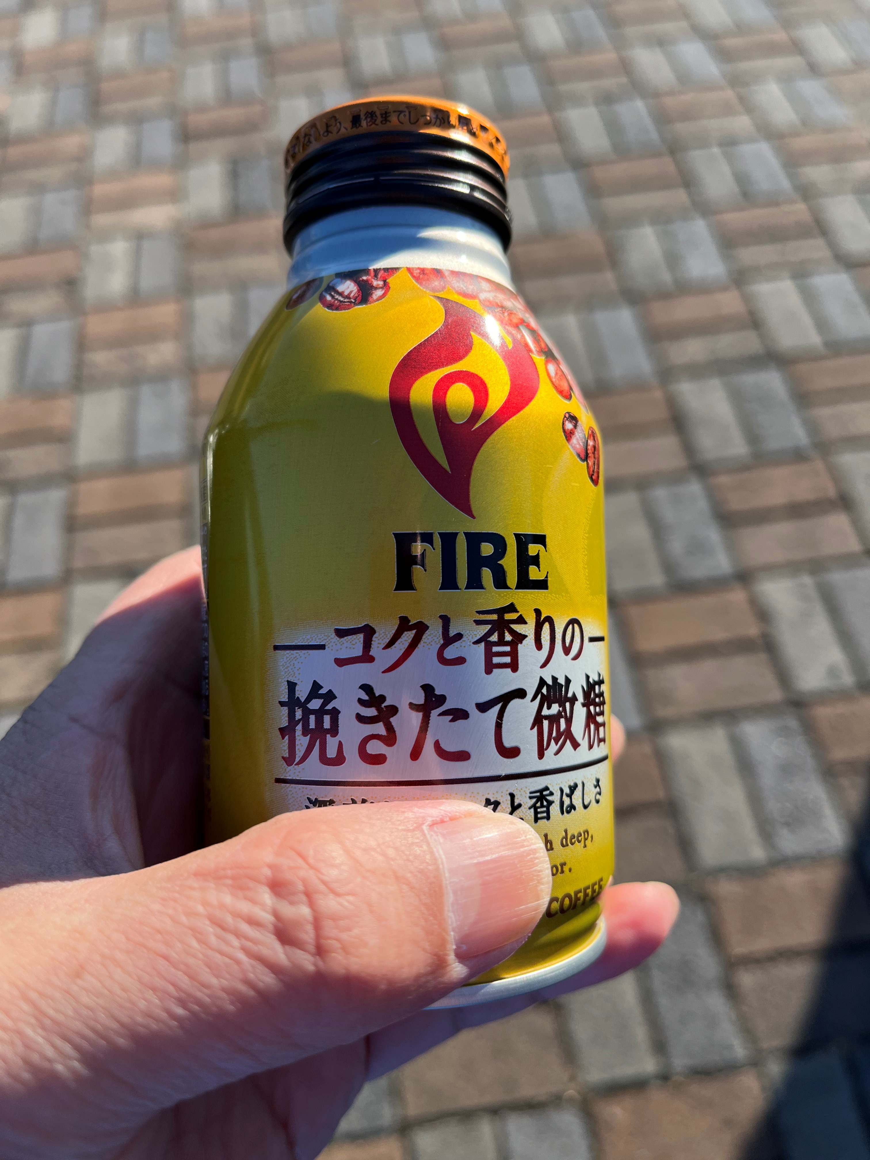 向こうの横断歩道から会社の先輩が缶コーヒーを差し入れてくれました!