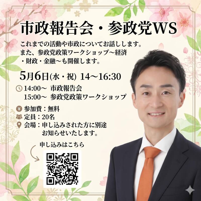 🌸市政報告会・参政党ワークショップのお知らせ🌸
