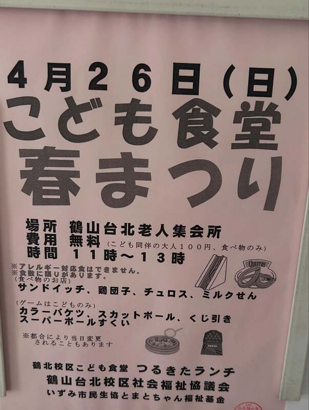 本日、鶴山台北校区の「こども食堂春まつり」に