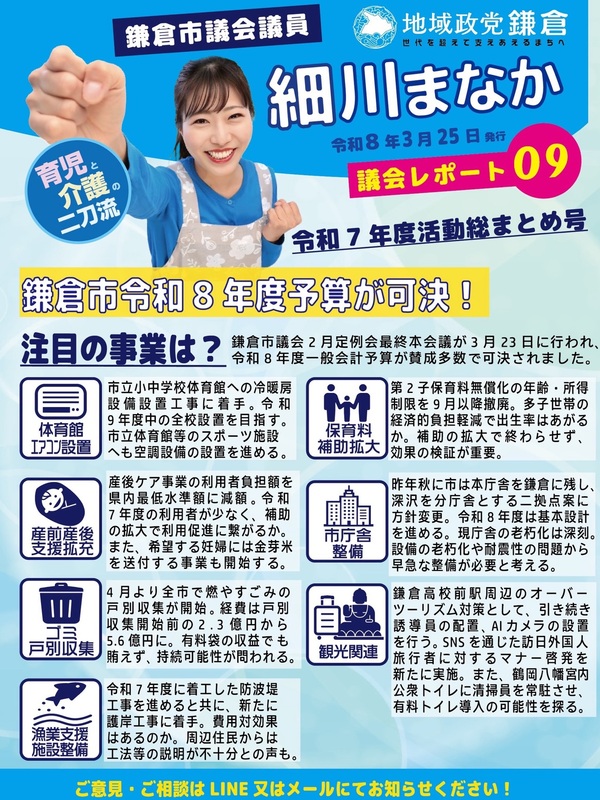 鎌倉市議会議員 細川まなか 市政レポートVol.9