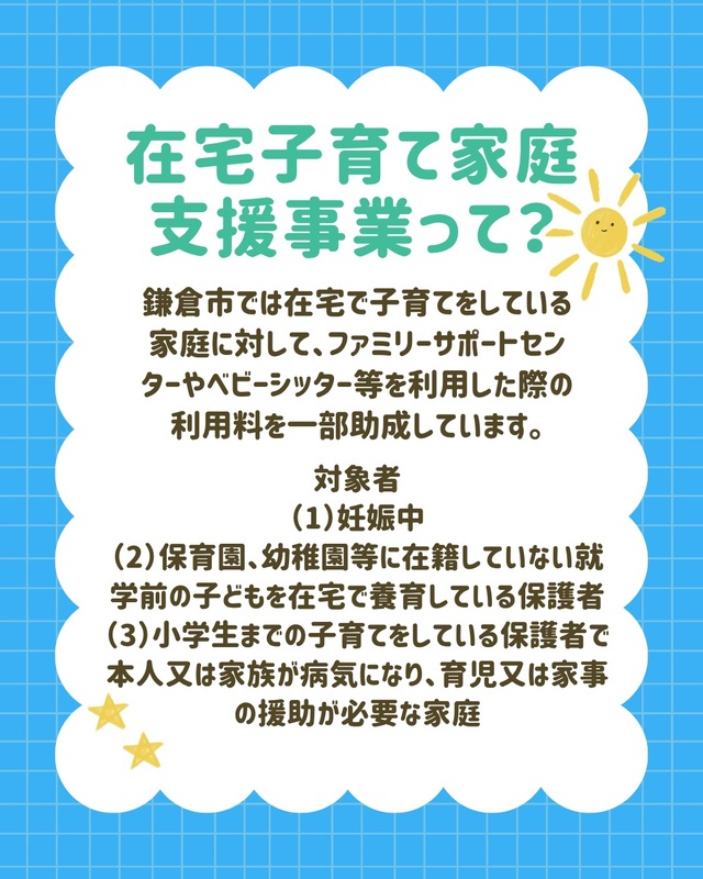鎌倉市では在宅で子育てをしている家庭に対して、