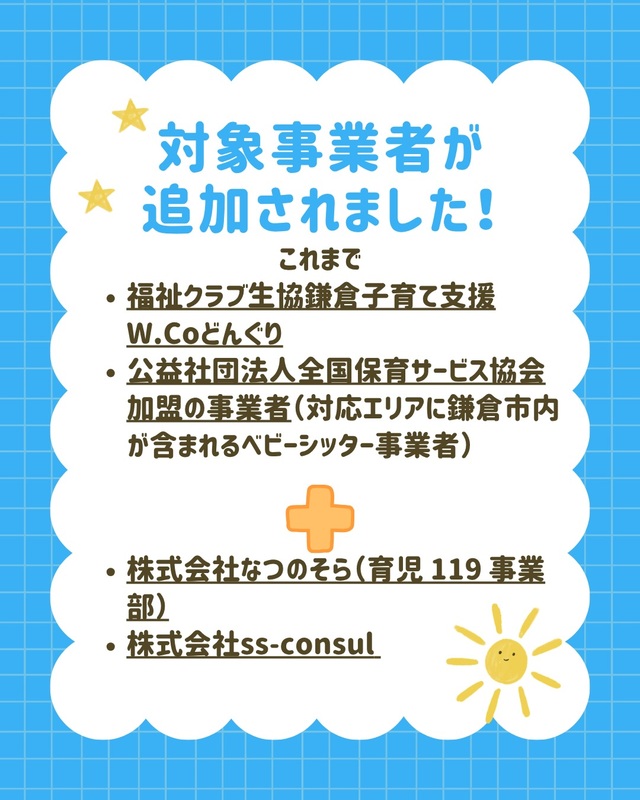 鎌倉市在宅子育て家庭支援事業に対象事業者が追加されました!