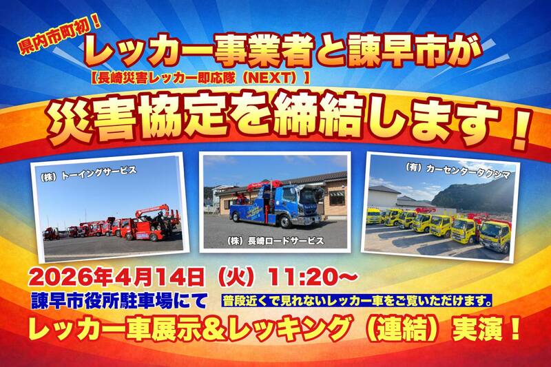 レッカー事業者【長崎災害レッカー即応隊(NEXT)】と諫早市が災害協定を締結します!