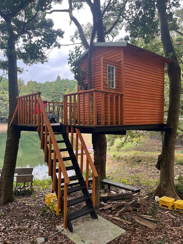 ため池脇にブランコもあり、大人も子どももワクワクするツリーハウスもあります🏡