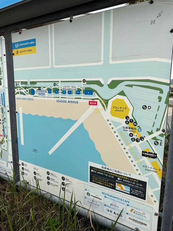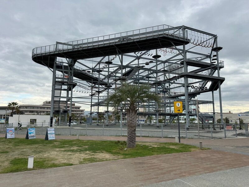 園内には、グランピング施設、高さ15mの大型アスレチック、天然温泉、飲食店のほか、無料で利用できるスケートボードパークなどが配置されています。地元漁協等と連携したイベントも開催され、年間100万人以上が訪れる同市の象徴的な拠点となっています。