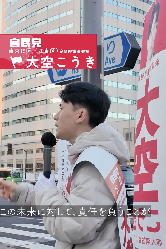 自民党・衆議院選挙区支部長(東京15区・江東区)の大空こうきです。