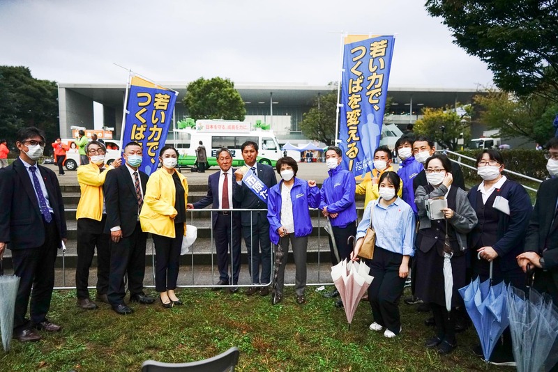 落ち着いた中に力強い応援を国光先生、星田こうじつくば市長候補、各つくば市議会議員選挙候補に頂きました!