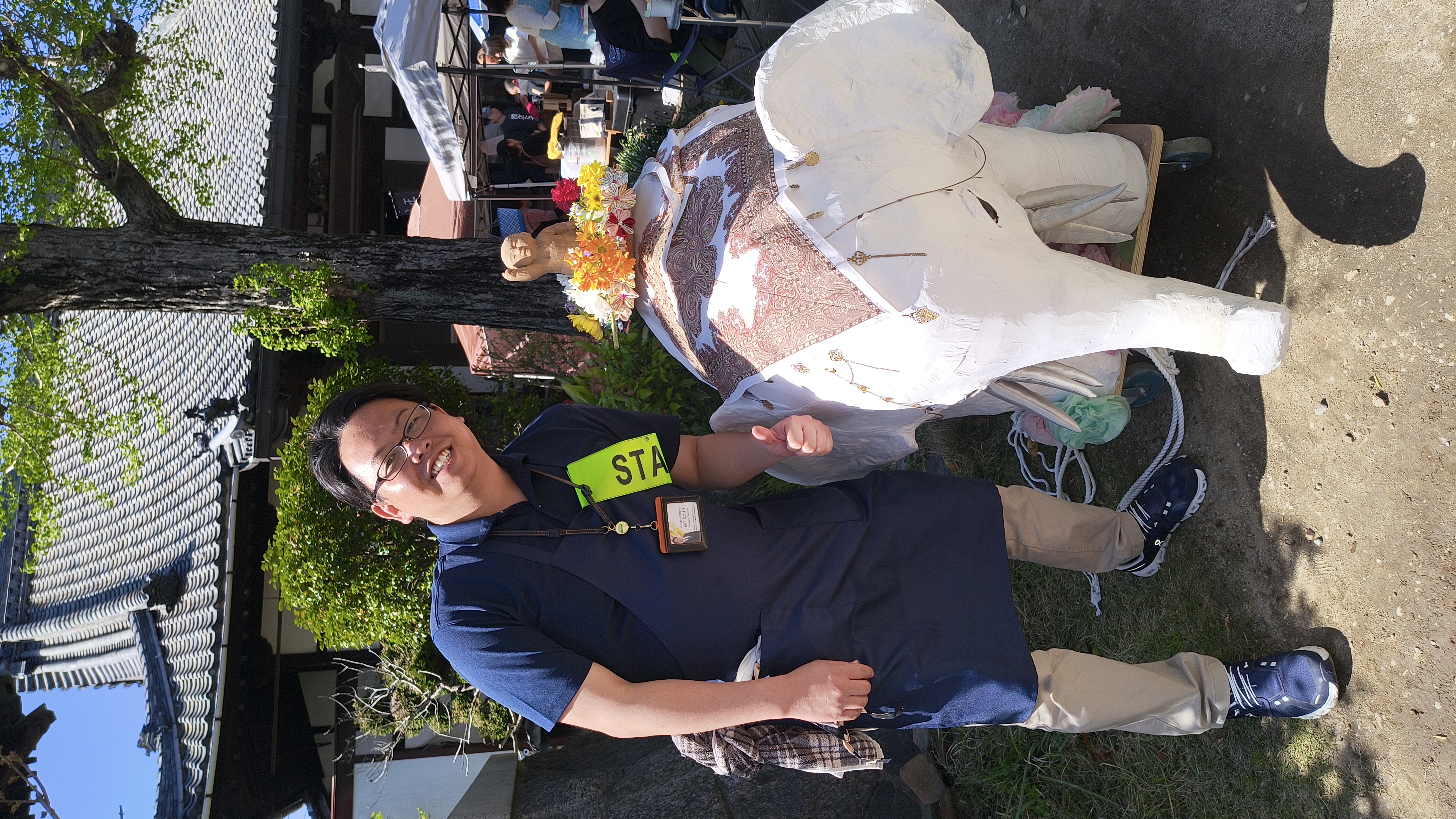 私もSTAFFの腕章をつけて、白象パレードの先導やえにち食堂のお手伝いをさせてもらいました。