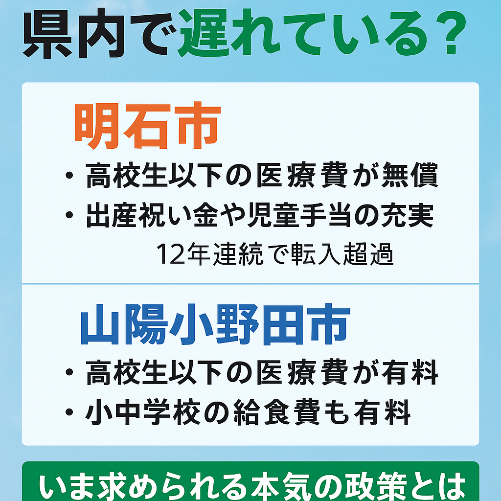 山陽小野田市の子育て支援は、県内比較でも明らかに遅れています。