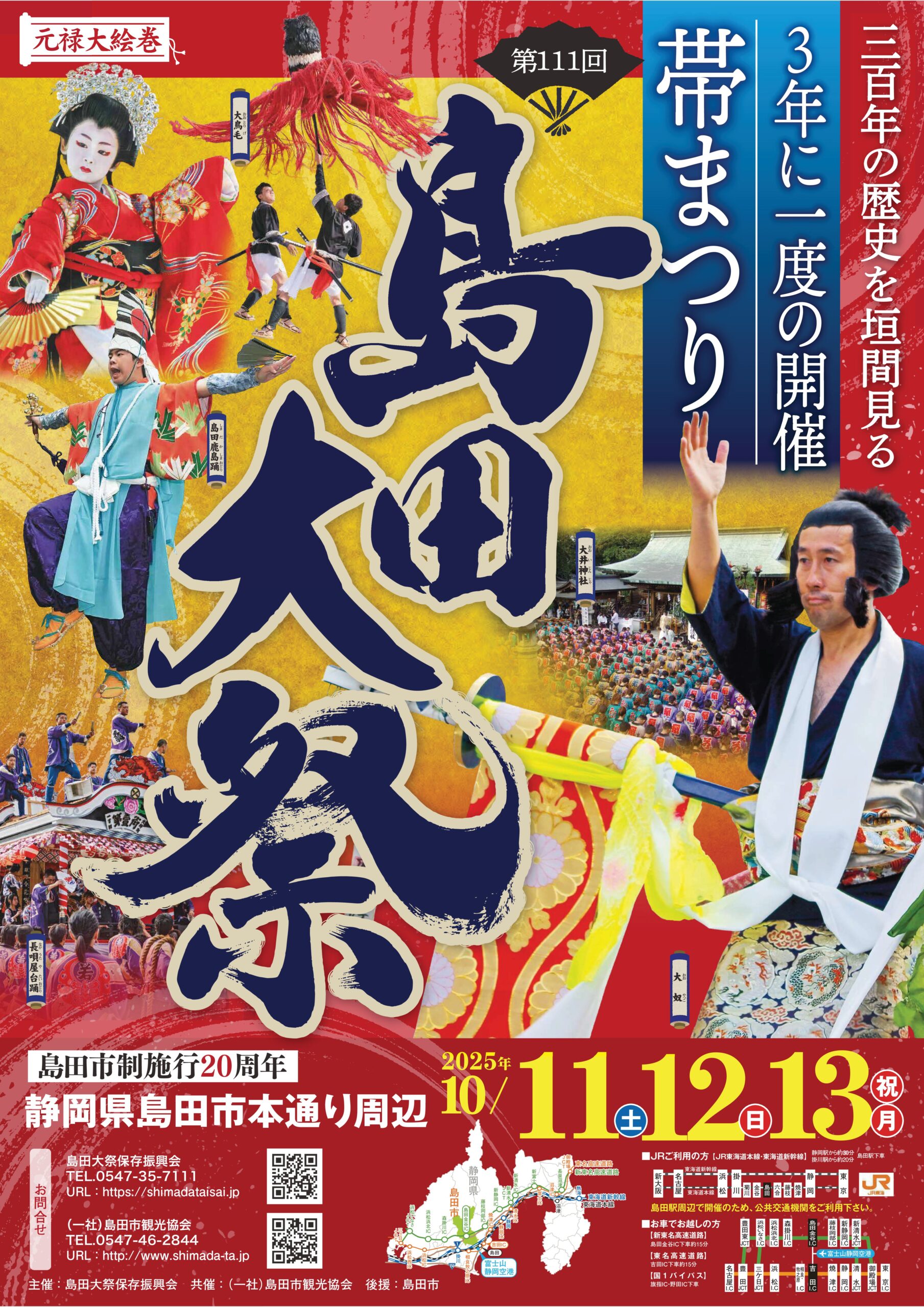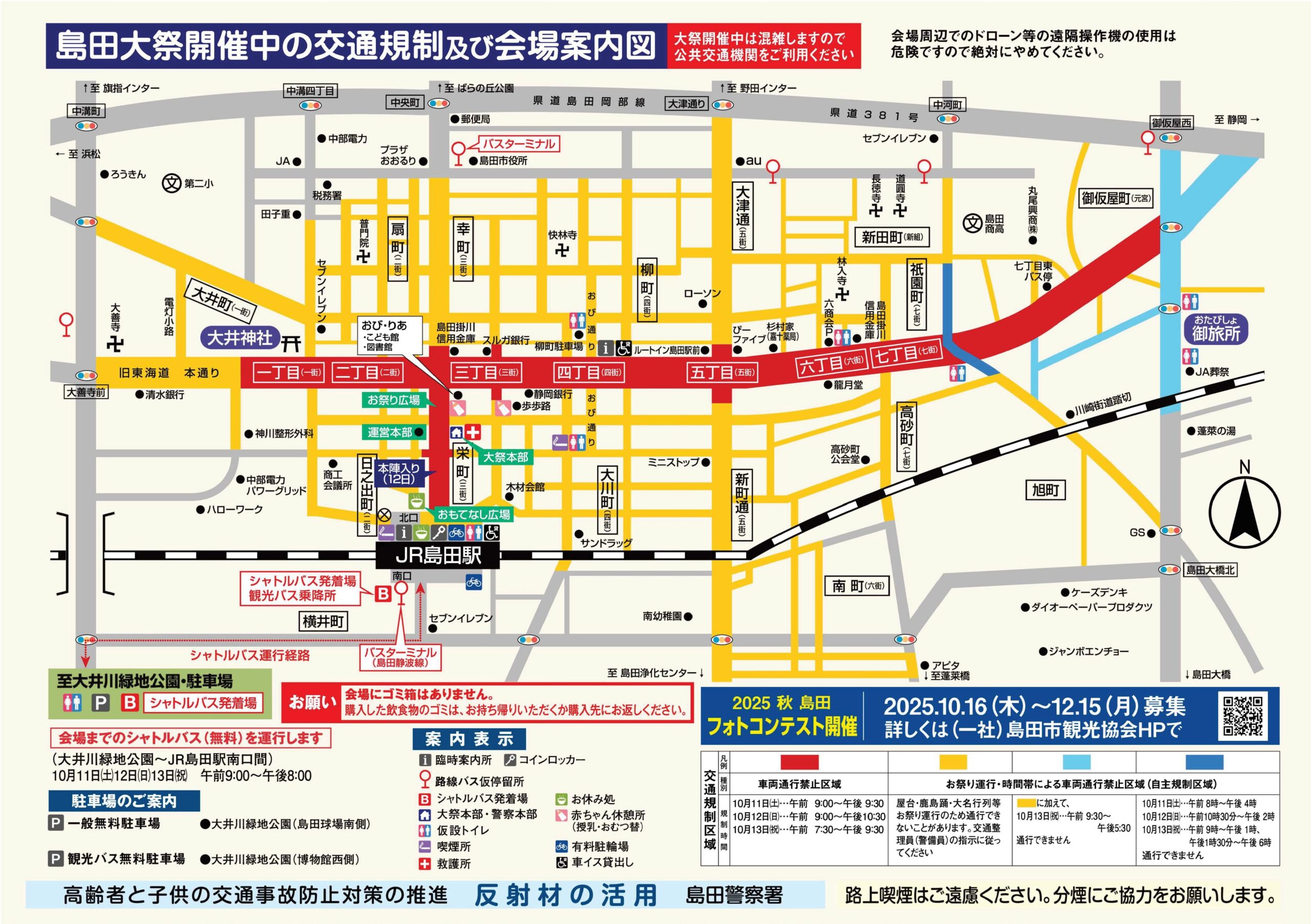 10月11日、12日、13日の島田大祭(帯まつり)開催中は、公共交通機関をご利用ください。