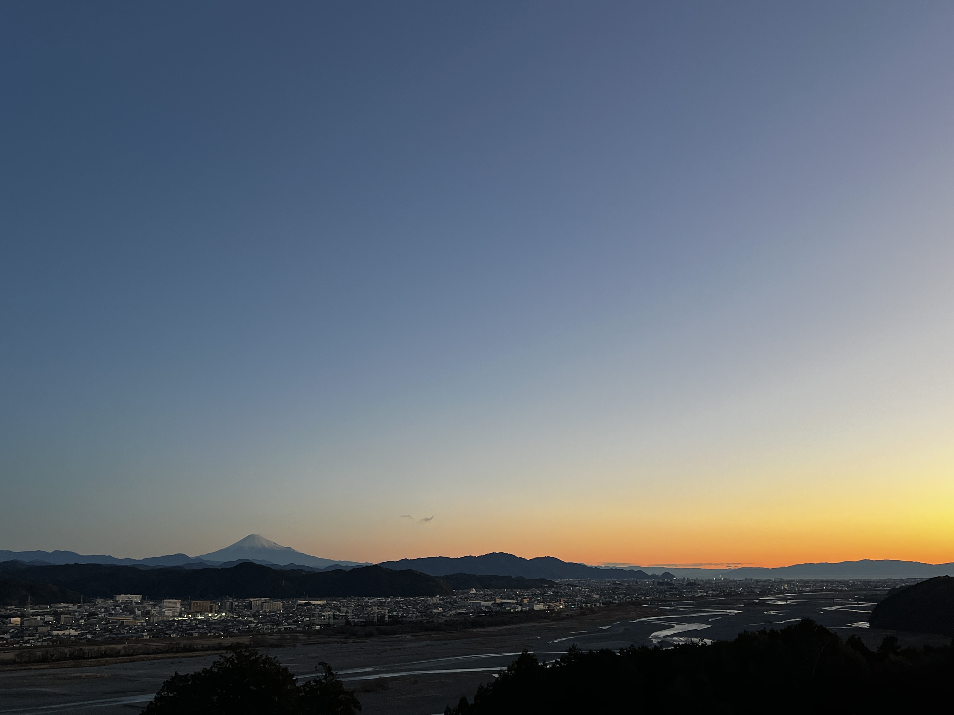 夜明けの牧之原台地から大井川、駿河湾、伊豆半島そして富士山を眺めることができました。貴重な時間を大切にし、全力で進んでまります!