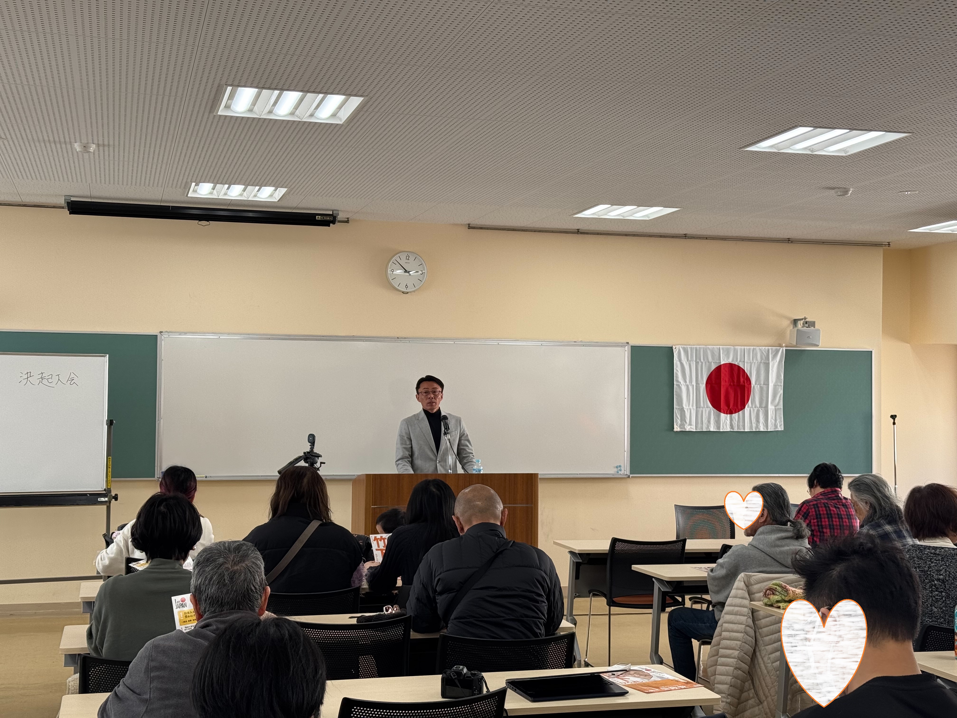 今日は初の個人演説会を行いました。 会場満員の約50名ほどの方が集まっていただけました