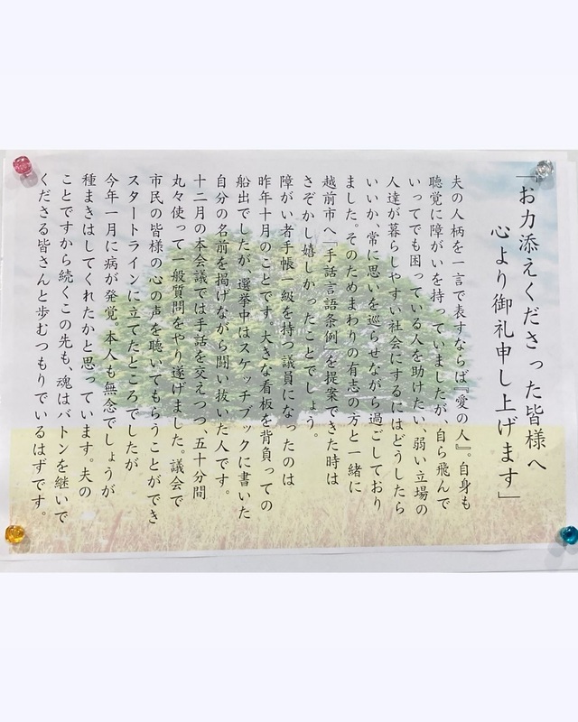 聴覚障害のある初めての越前市議会議員となりました。