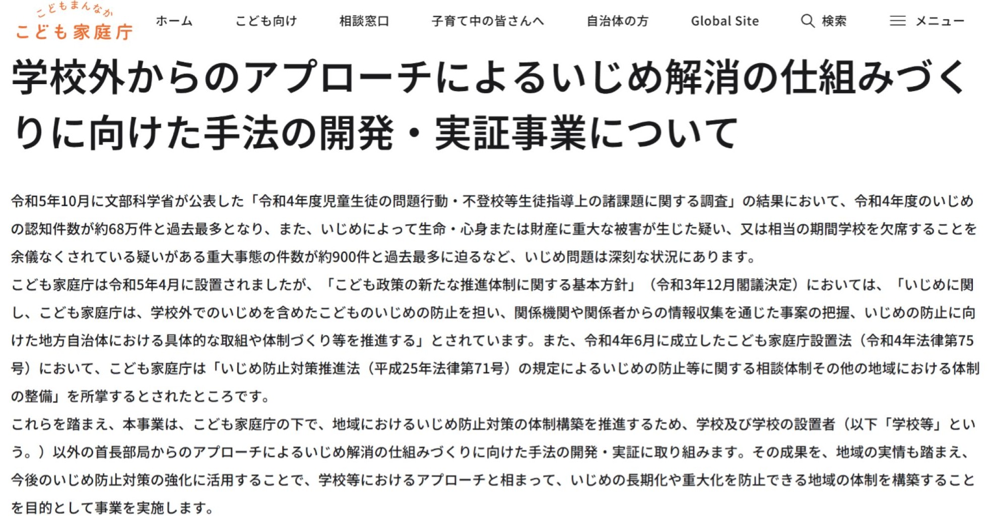 こども家庭庁が、いじめ犯罪防止実証事業を行っているにも関わらず、多くの自治体が参加をしていない。