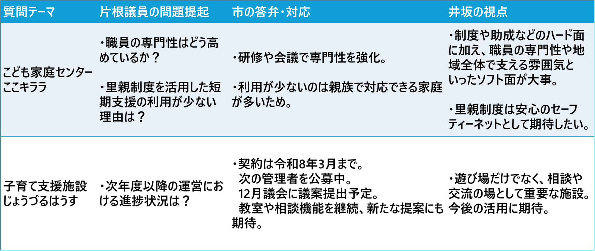 片根議員の一般質問を通して、こども家庭センターの現状と課題、じょうづるはうすの今後の運営について理解を深めることができました。