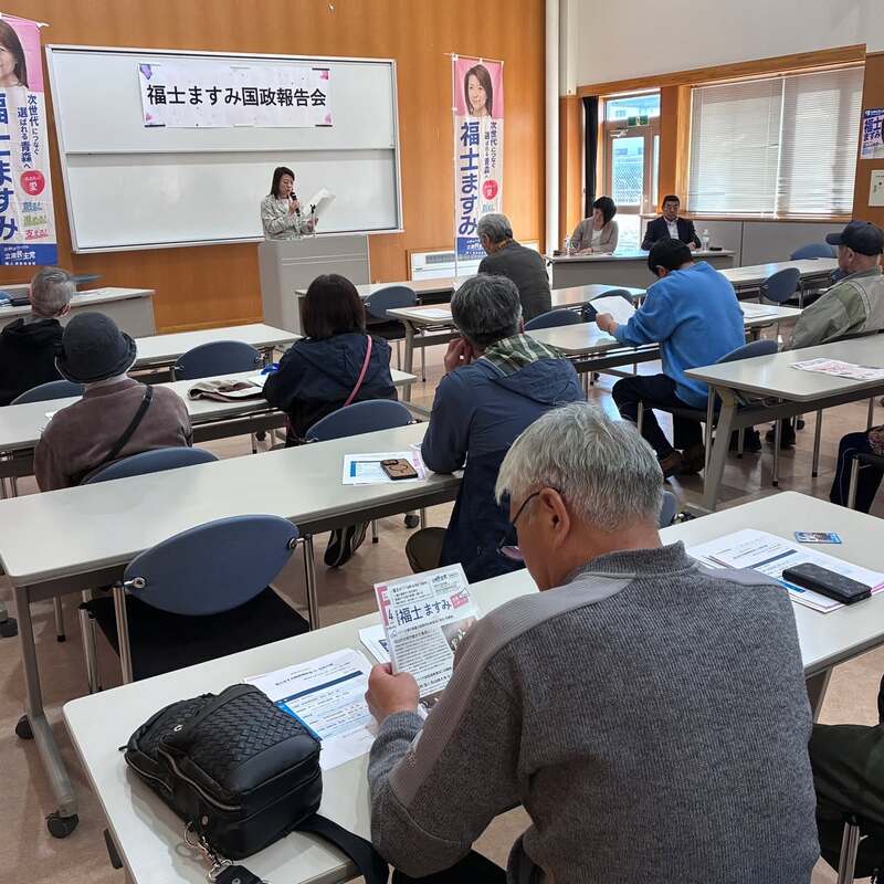 ホーム>政党・政治家>福士 ますみ (フクシ マスミ)>✨本日4月19日、五所川原市民学習情報センターにて、参議院議員福士珠美の国政報告会in五所川原...