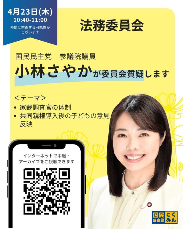 ホーム>政党・政治家>小林 さやか (コバヤシ サヤカ)>本日23日は、裁判所職員の定員に関する法改正について質問します。