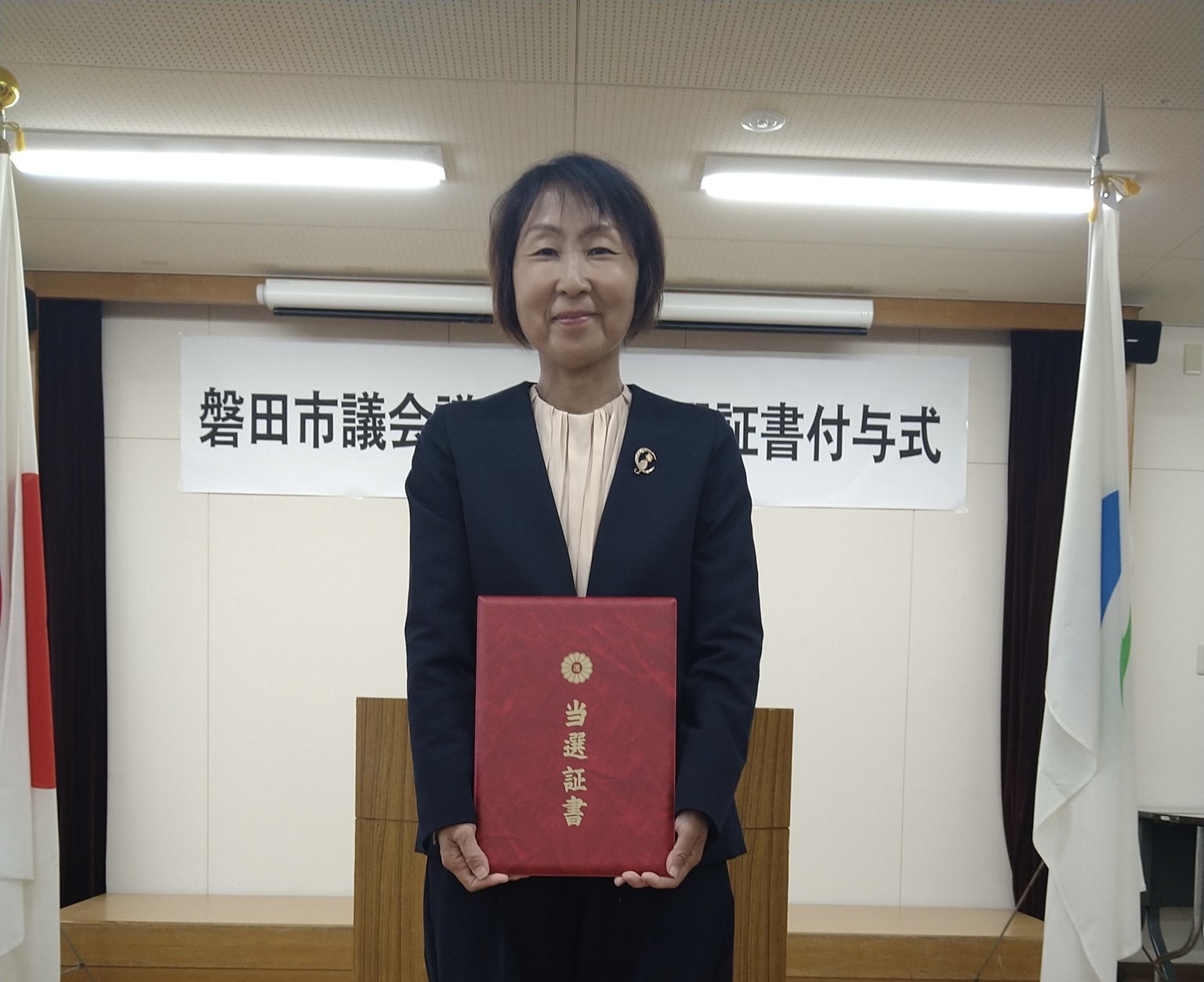 ホーム>政党・政治家>宮崎 まりこ (ミヤザキ マリコ)>磐田市議会議員選挙当選証書を受け取りました! 宮崎まりこです